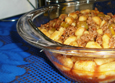 Por fim, os nhoques receberam um generoso banho de molho bolognesa e azeitona, uma cobertura de queijo ralado e foram ao forno por tempo mínimo para o queijo gratinar.