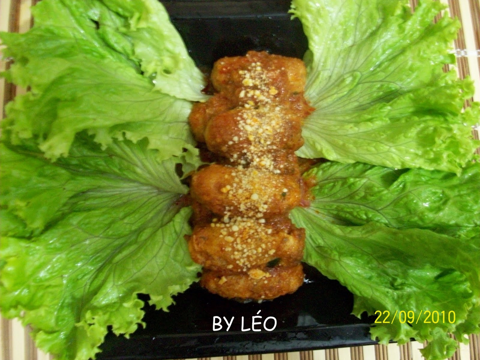 Fritar a cebola e o alho no azeite adicionar o purê de tomates a água e os outros ingredientes, cozinhar em fogo baixo até reduzir, misture as almôndegas e sirva.. polvilhando queijo ralado