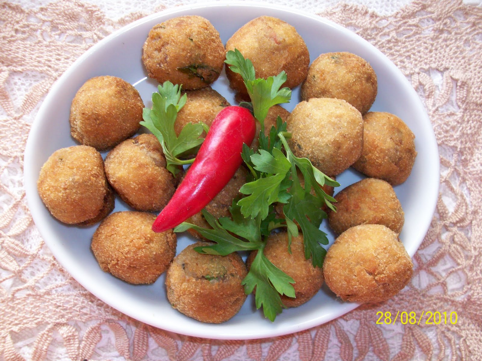 Misture todos os ingredientes, faça bolinhas e frite em óleo quente.
