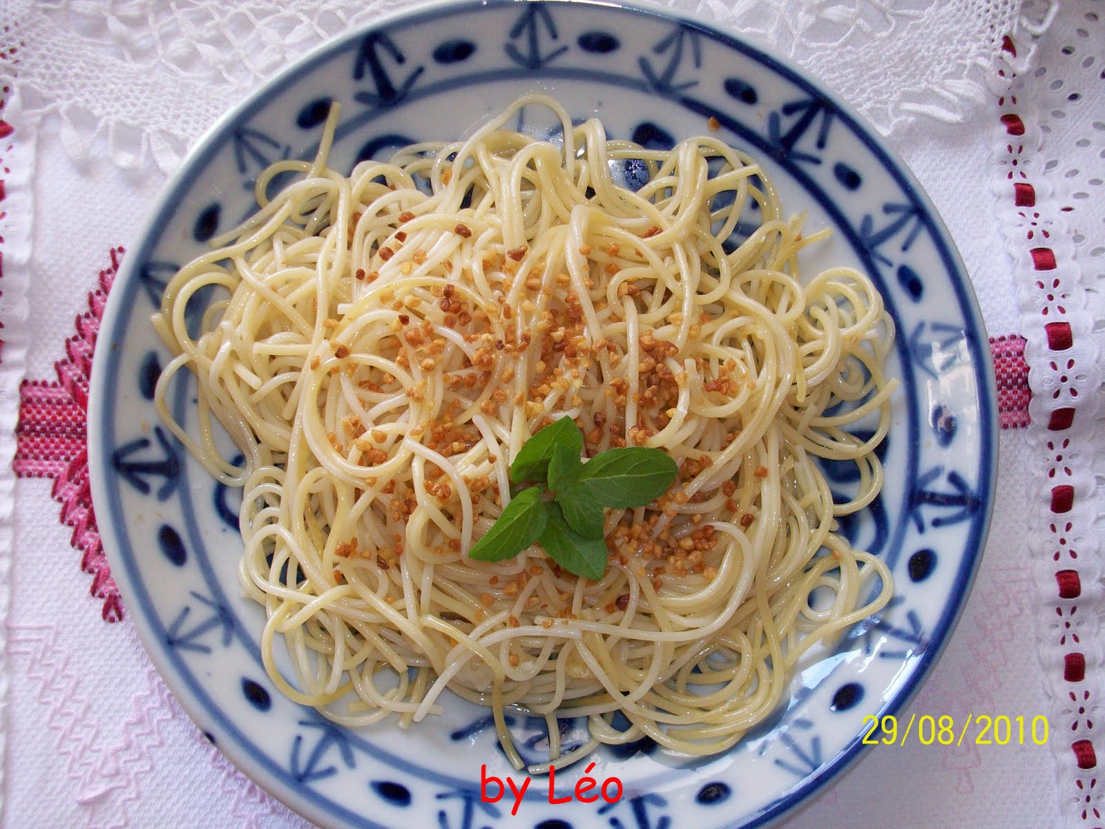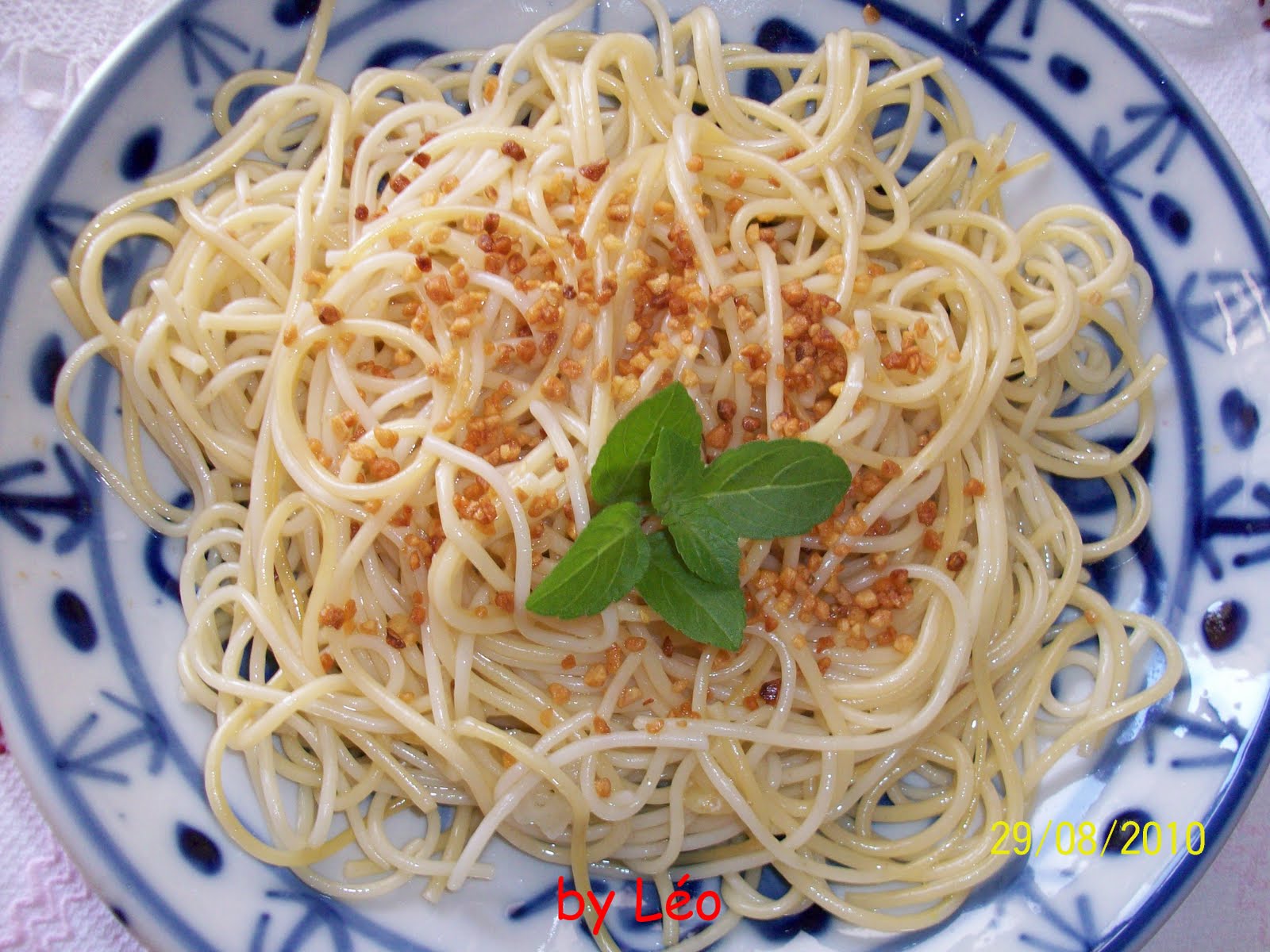 A parte fritar o alho no azeite, e misturar ainda quente ao macarrão, polvilhar queijo ralado
