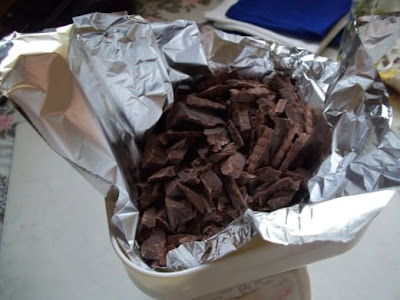 Para a montagem, recheie e cubra o bolo com a mousse de chocolate, salpique raspas de chocolate meio amargo ou ao leite, e leve a geladeira até o momento de servir. (Não coloquei as raspas de chocolate)